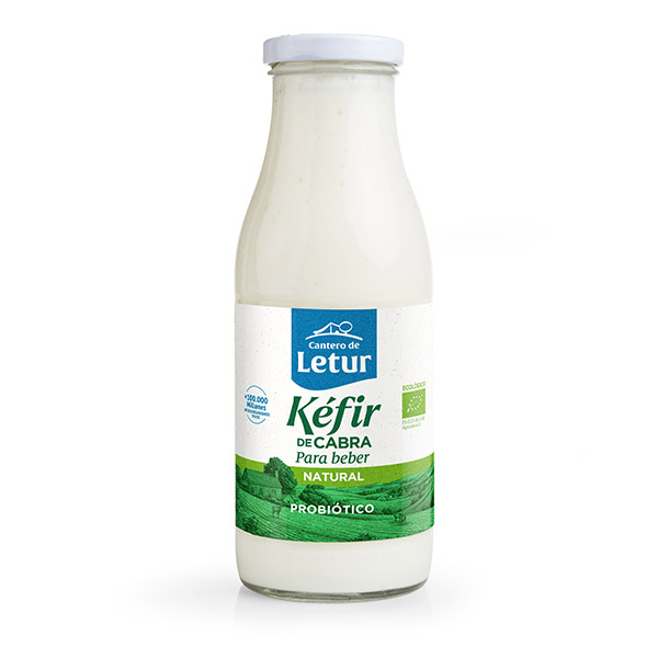 Kéfir ecológico de cabra, elaborado con leche fresca ecológica, fermentos vivos de kéfir y nada más. De sabor suave y ligeramente ácido, con una textura fluida y refrescante, en formato bebible y con todos los beneficios propios del kéfir de cabra.